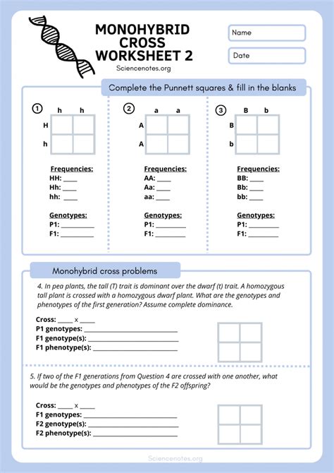 Free PDF Life Science Genetics Monohybrid Crosses Worksheet pdf Doc BookBoon